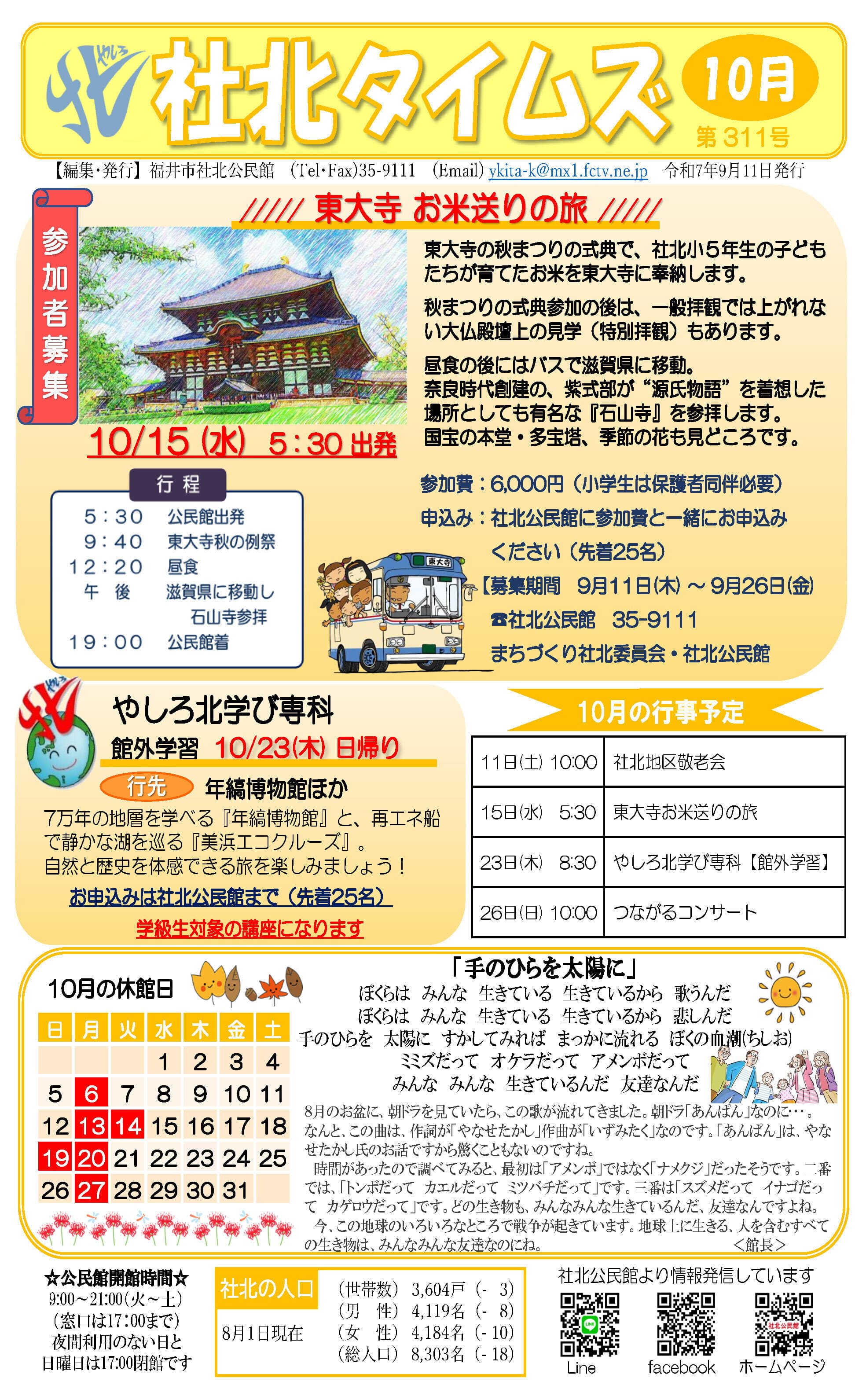 クリックすると拡大表示。 PDF版の「社北タイムズ」もダウンロード出来ます。