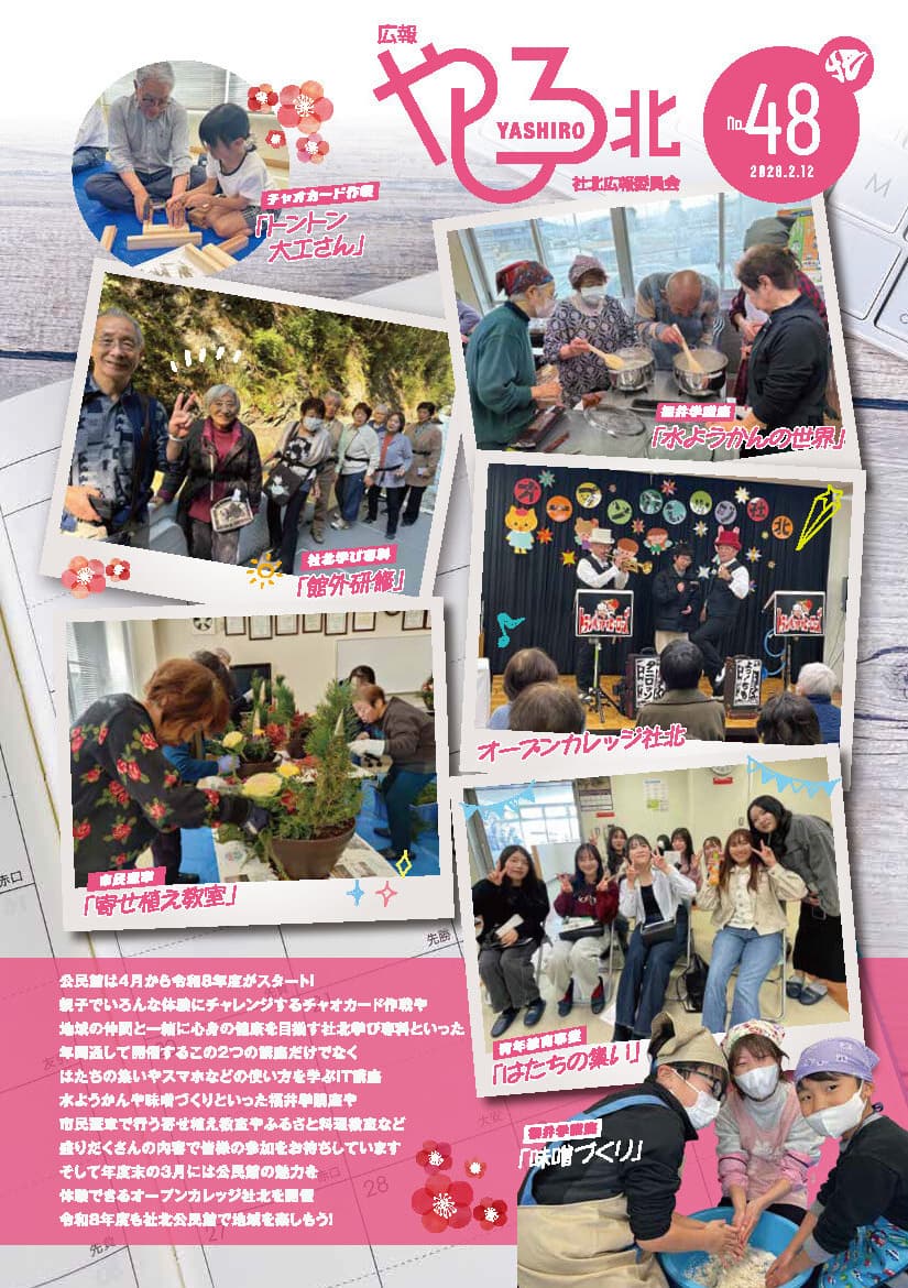 平成24年度に発足した社北広報委員会では、素敵な出来事や楽しいイベントなどの地域情報を広報「やしろ北」にまとめ、年3回、皆様のお手元にお届けしています。