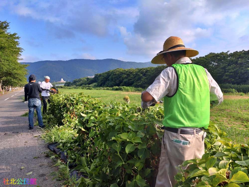 毎年暑い暑い8月に行っている、あじさいの花がらを摘み取る作業とごみ拾いを3日に行いました。6時30分からと言う早朝にも関わらず、自治会長さんをはじめ、まちづくり社北委員、ボランティアの中学生総勢60名での作業。みんな汗だくになりながら、1本1本仕上げていきます。来年もきれいな「あじさいロード」をお楽しみください。作業にご協力いただいた皆さま、ほんとにありがとうございました。