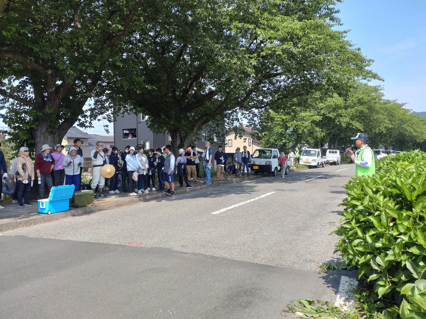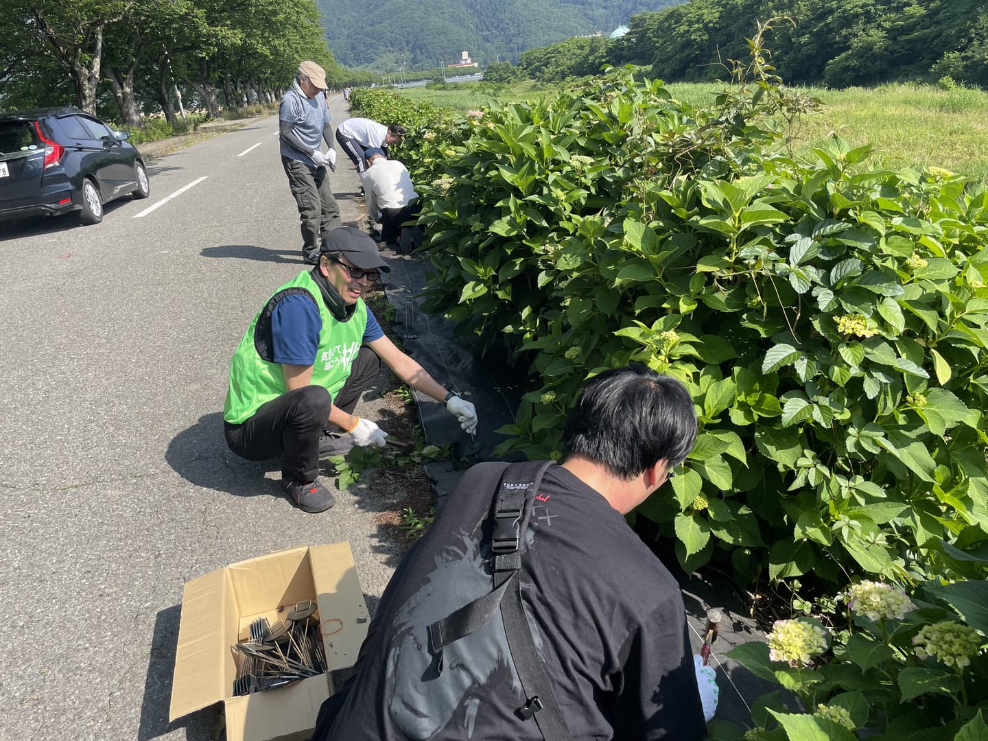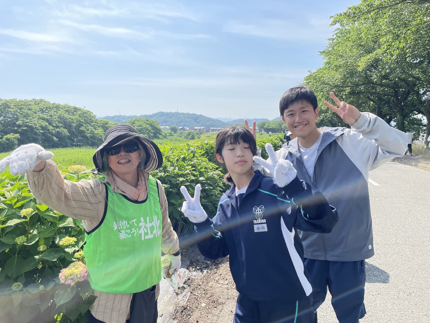 あじさいが見ごろを迎える前に地域のみんなでクリーン作戦!社中の生徒たちと地域の方々の総勢90名であじさいに絡まっている雑草除去や周囲のごみ拾いを行いました。1時間程度の作業でしたが、皆さんのご協力でとても綺麗な状態に...これで、これから訪れる方々に気持ちよくあじさいを鑑賞してもらえそうです。あじさいロードのフォトコンテストも行いますので、ぜひあじさいを観に来てください。