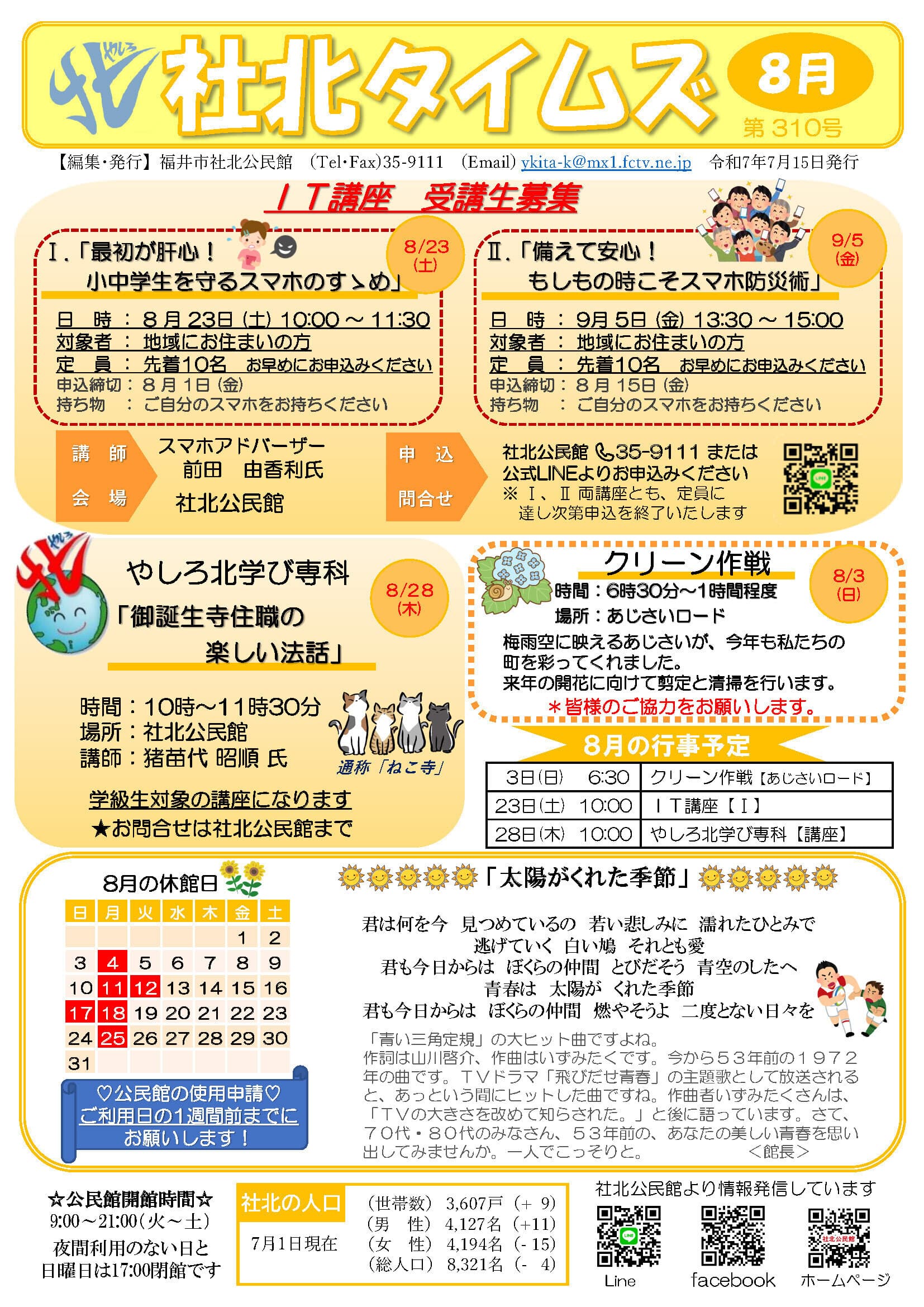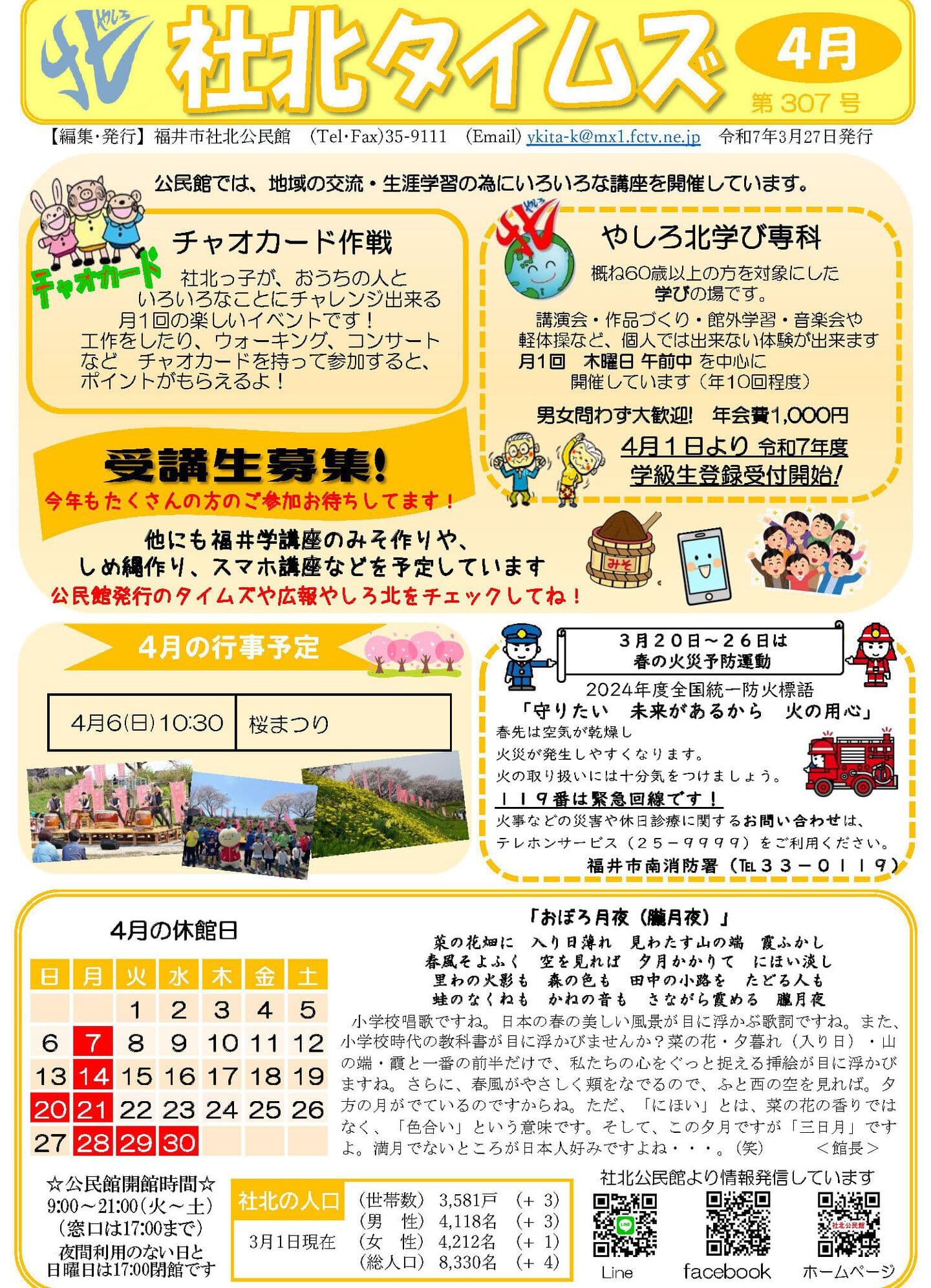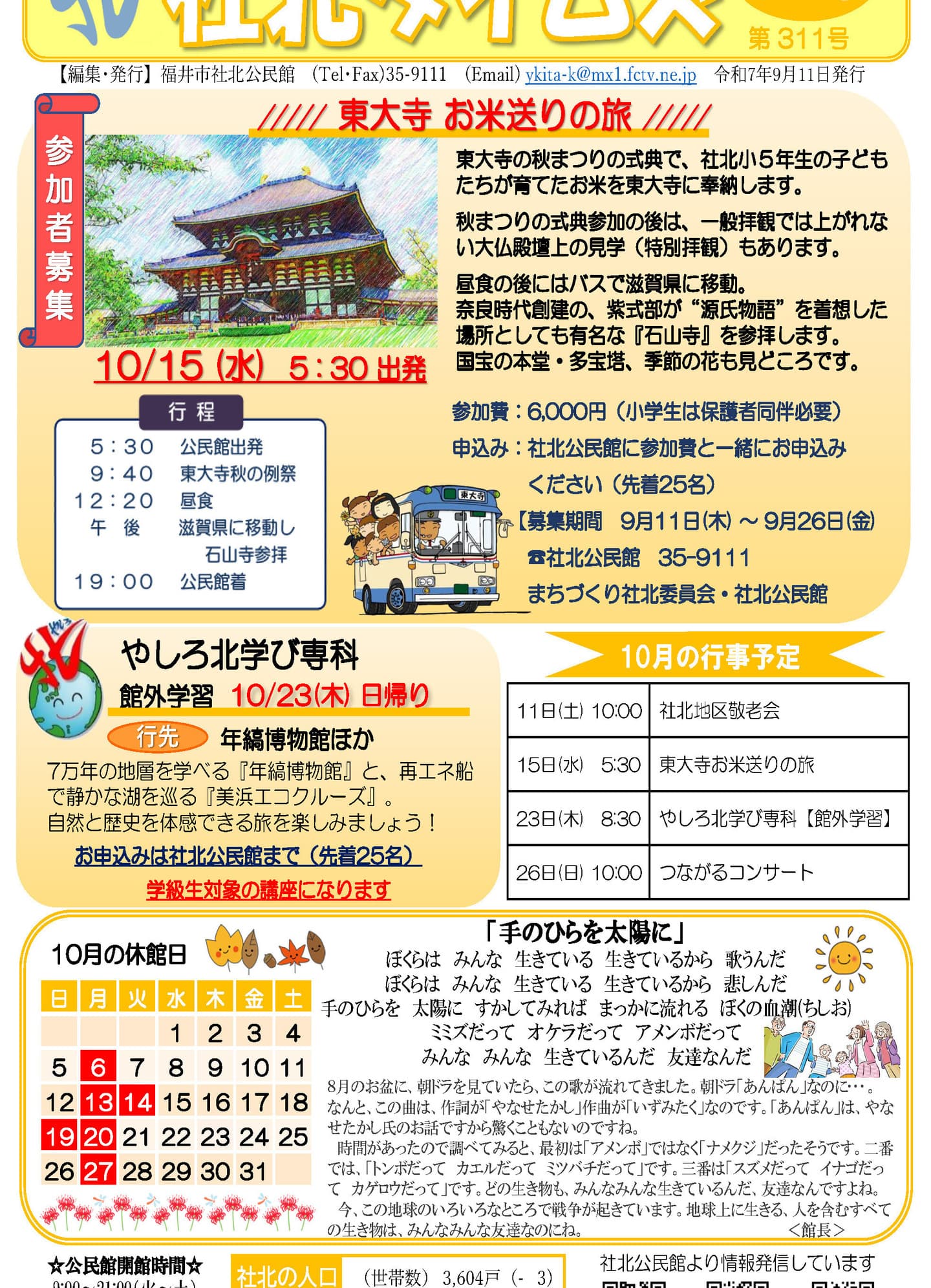 クリックすると拡大表示。 PDF版の「社北タイムズ」もダウンロード出来ます。