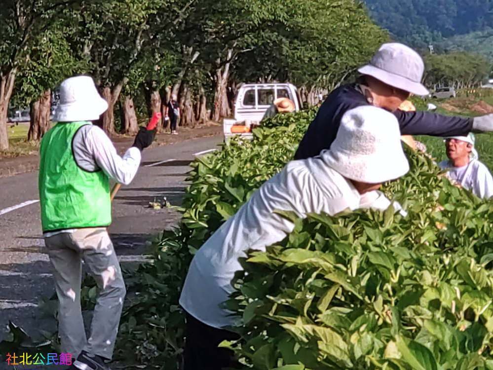 毎年暑い暑い8月に行っている、あじさいの花がらを摘み取る作業とごみ拾いを3日に行いました。6時30分からと言う早朝にも関わらず、自治会長さんをはじめ、まちづくり社北委員、ボランティアの中学生総勢60名での作業。みんな汗だくになりながら、1本1本仕上げていきます。来年もきれいな「あじさいロード」をお楽しみください。作業にご協力いただいた皆さま、ほんとにありがとうございました。