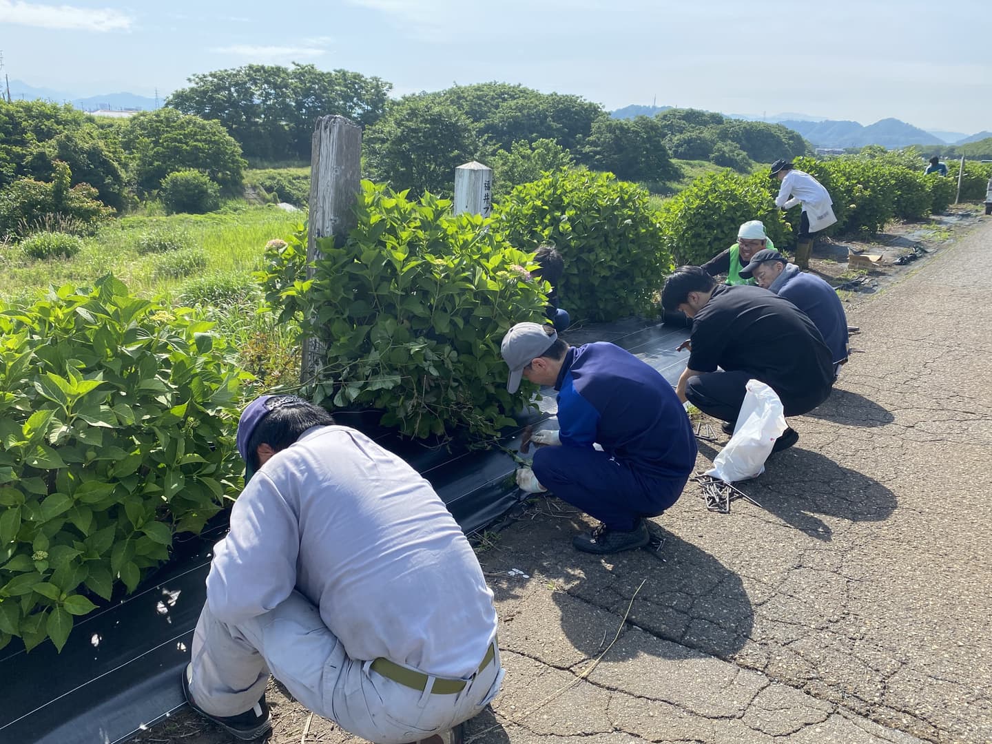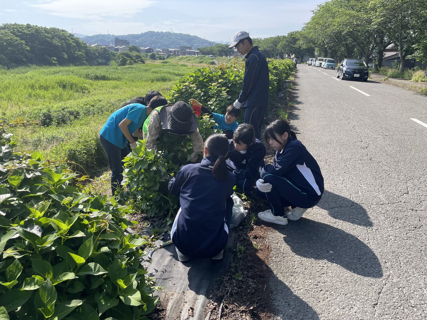 あじさいが見ごろを迎える前に地域のみんなでクリーン作戦!社中の生徒たちと地域の方々の総勢90名であじさいに絡まっている雑草除去や周囲のごみ拾いを行いました。1時間程度の作業でしたが、皆さんのご協力でとても綺麗な状態に...これで、これから訪れる方々に気持ちよくあじさいを鑑賞してもらえそうです。あじさいロードのフォトコンテストも行いますので、ぜひあじさいを観に来てください。