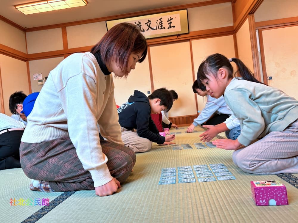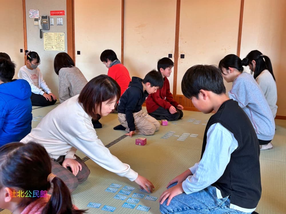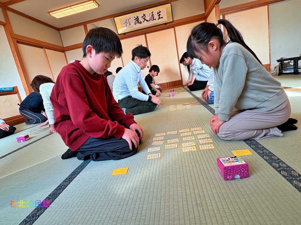 新年、最初のチャオカード作戦は、恒例の五色百人一首大会です。指導していただいた、吉田晴美先生が句を詠み始めると、おしゃべりをしている会場はシ~ンと静まり、真剣に耳をたてます。上の句を読み始めると札に手を伸ばす子供たち!!また、100首の内、一字決まりの句を早く取る方法を先生に教えてもらい、みんなが句に集中して向かう姿!!日頃、学校でも家庭でも体験できない時間を親子で過ごしました。