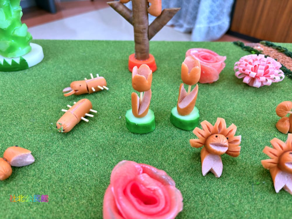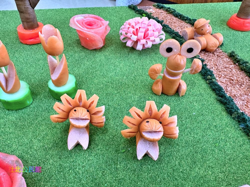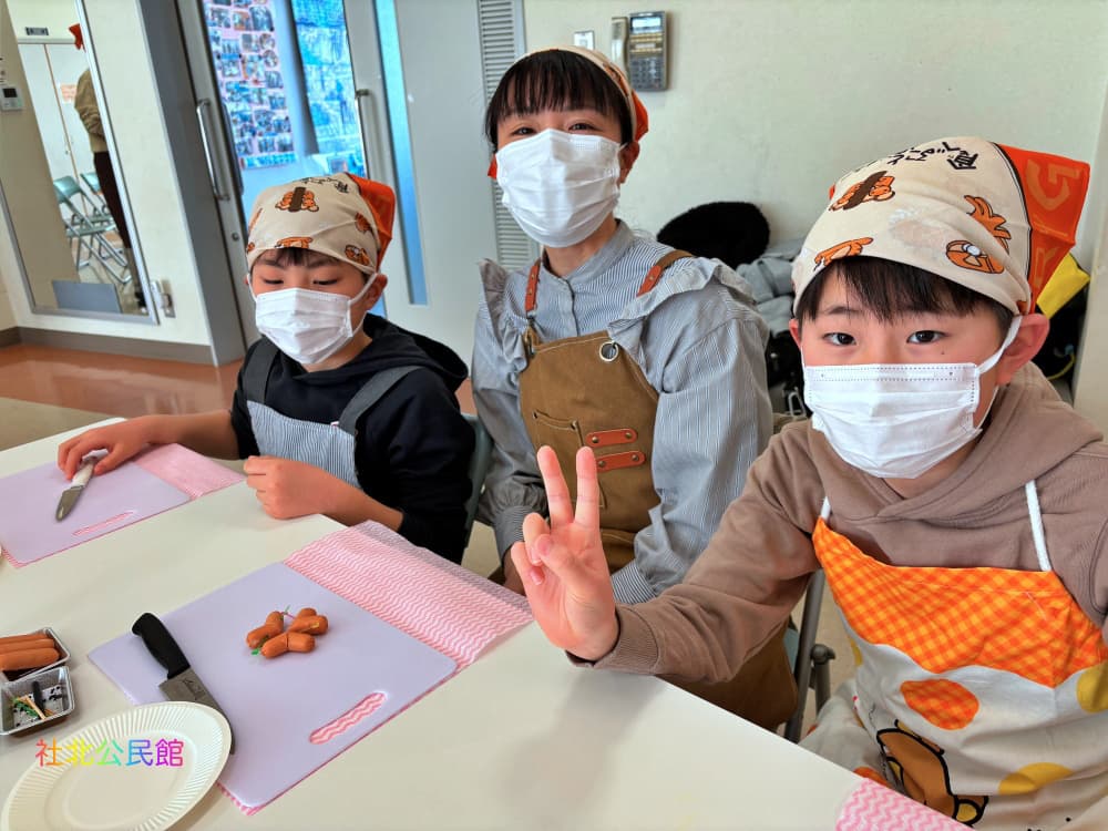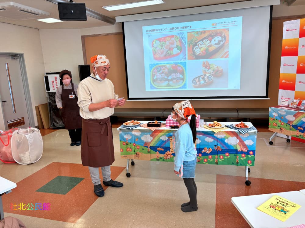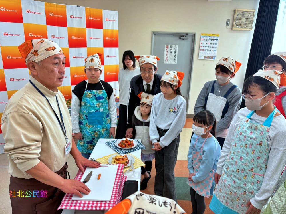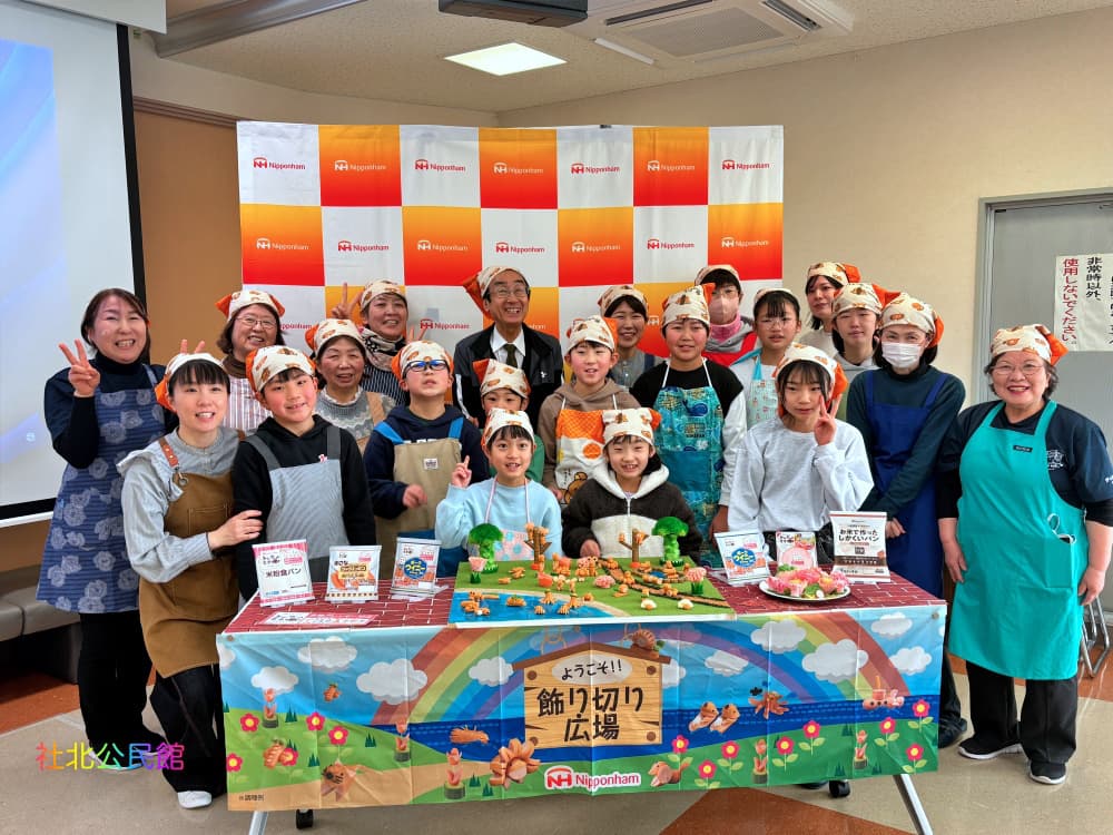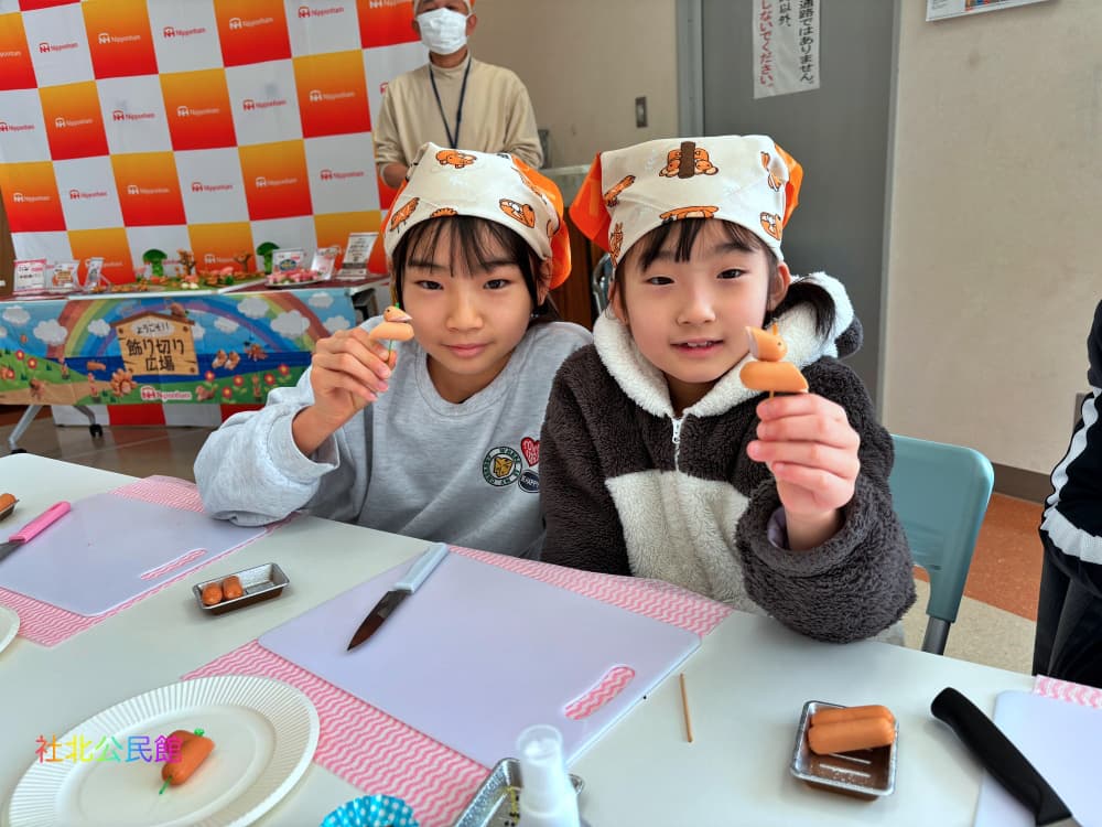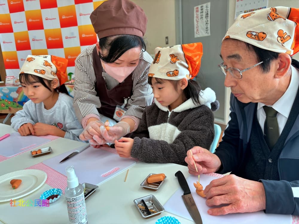 ニッポンハムの方にお越しいただき、親子でウインナーの飾り切り教室を行いました。いつも食べているウインナーが、ハート・コアラ・きのこ等など、かわいい形に大変身!!みんな包丁片手に料理職人気取りです。