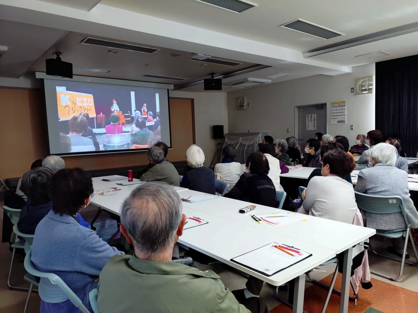 マジックやクイズ、クリスマスソングなど盛りだくさんで楽しませて下さいました。音楽に合わせて身体を動かしたり、マジックのお手伝いをしたり、楽しい」クリスマスになりました。