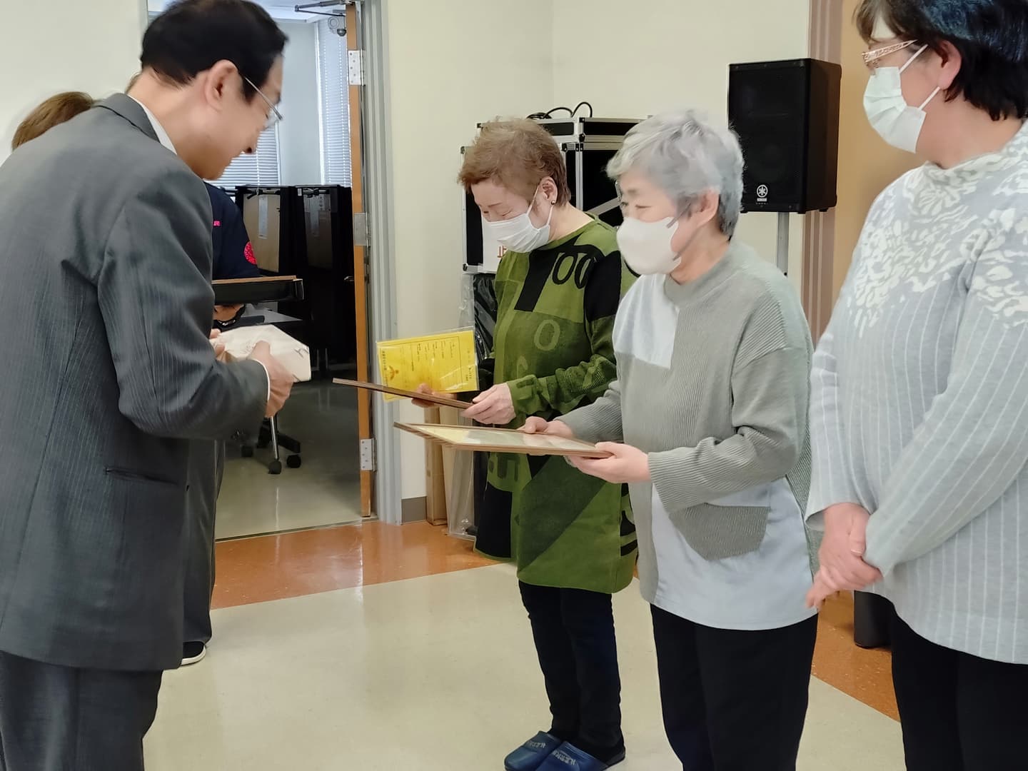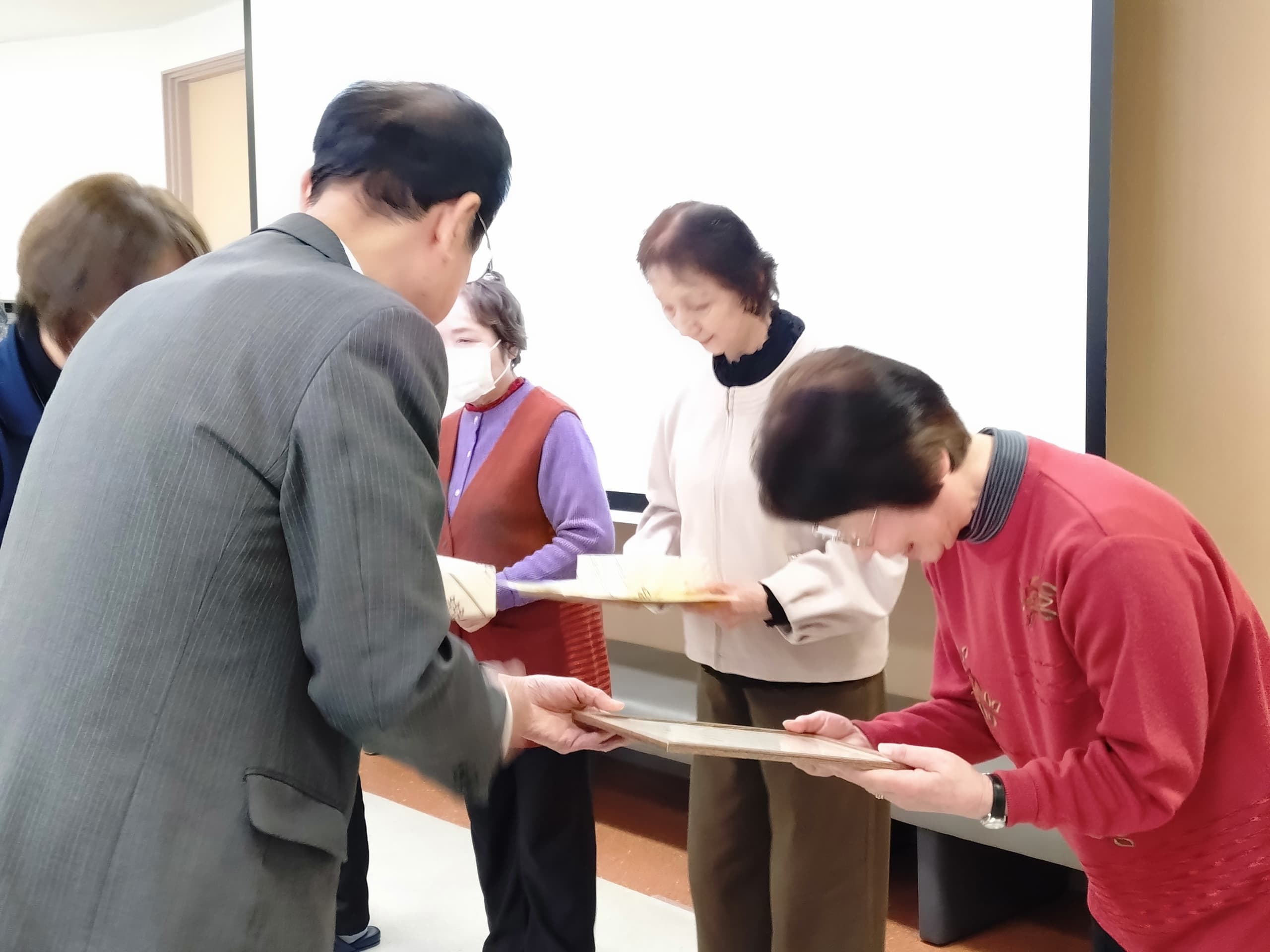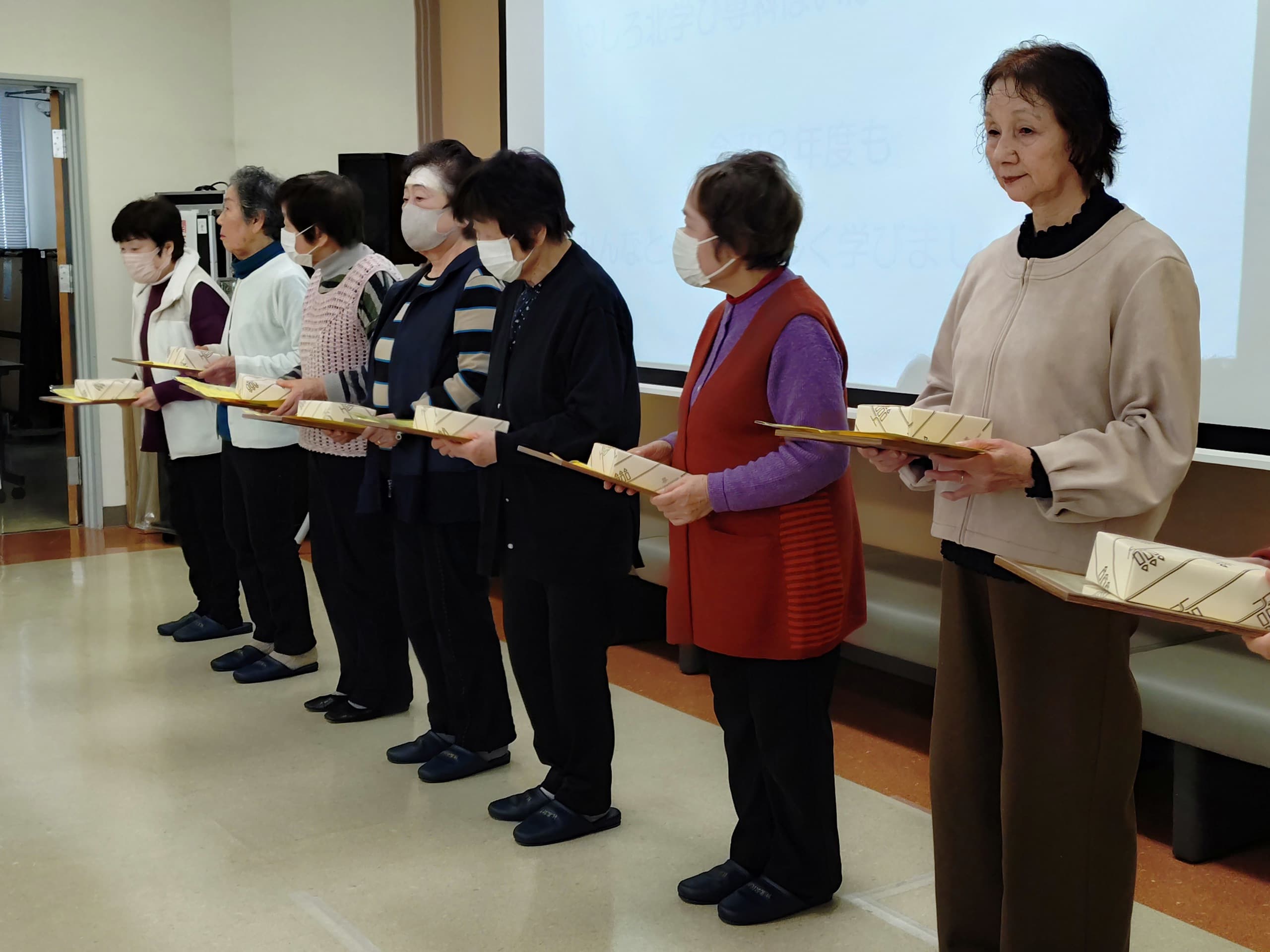 全講座を受講した学級生が15名おられ、いくつになっても学ぶ意欲をを忘れないことに敬意を表し皆勤賞を授与しました。