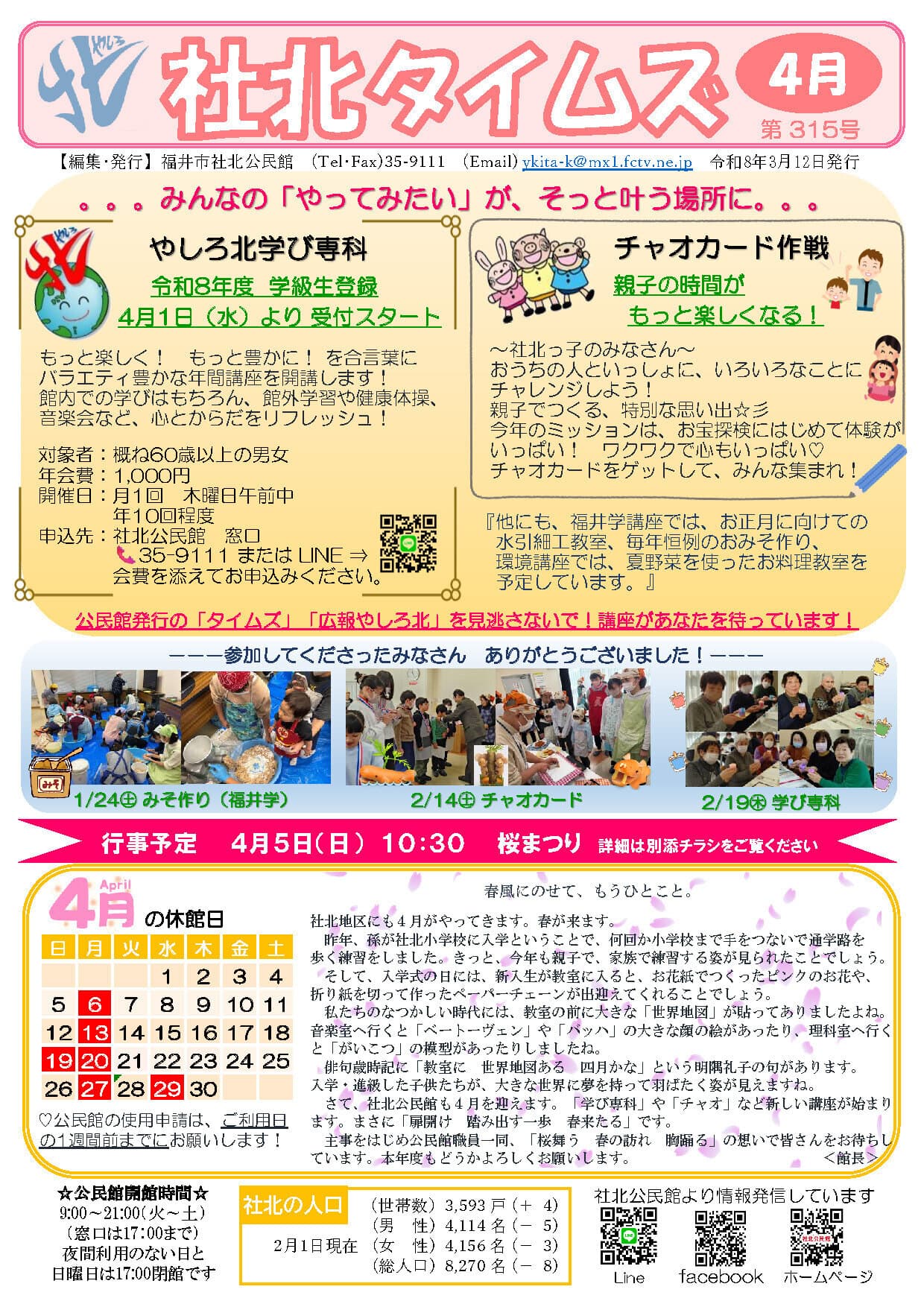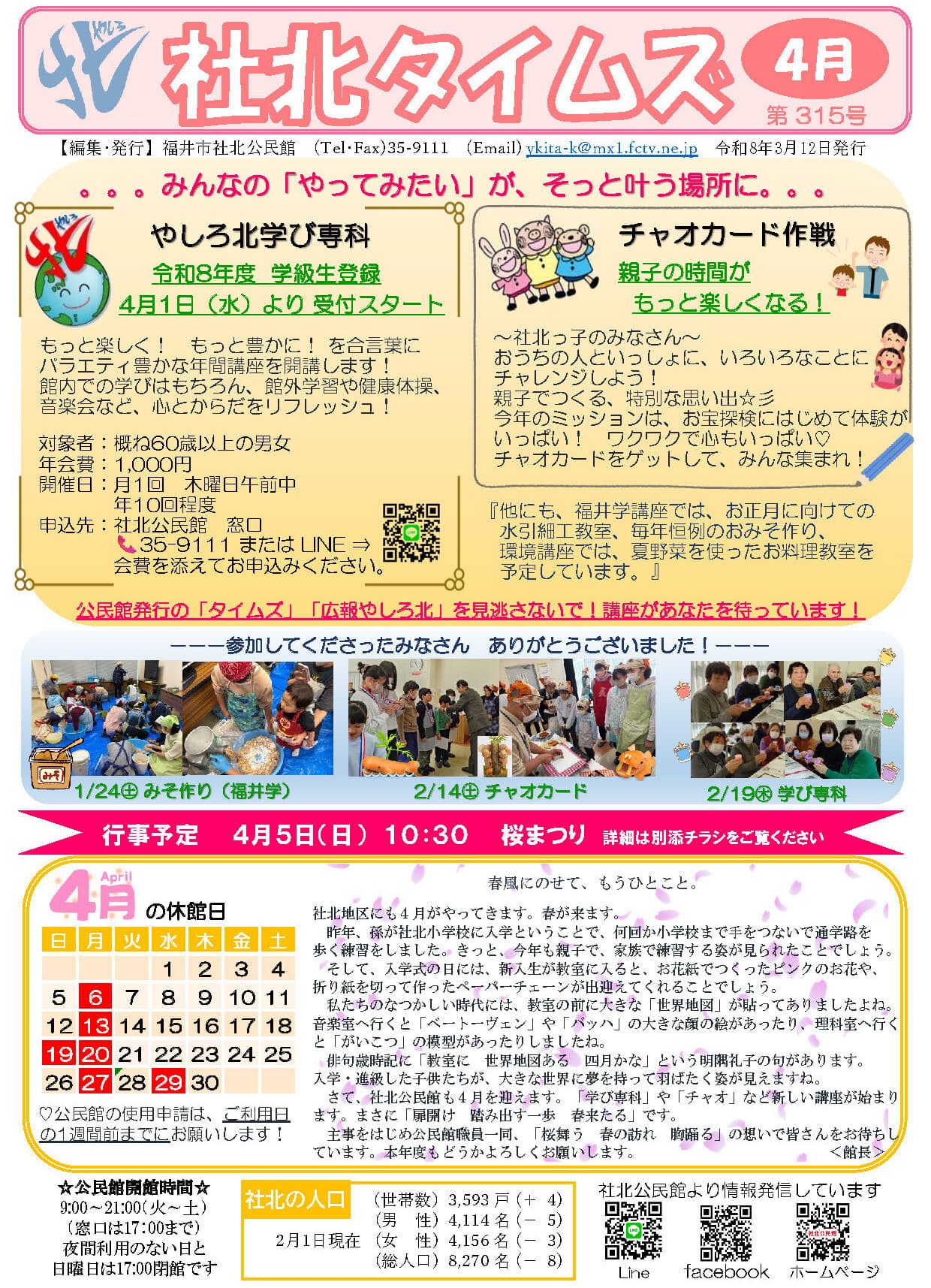 クリックすると拡大表示。 PDF版の「社北タイムズ」もダウンロード出来ます。