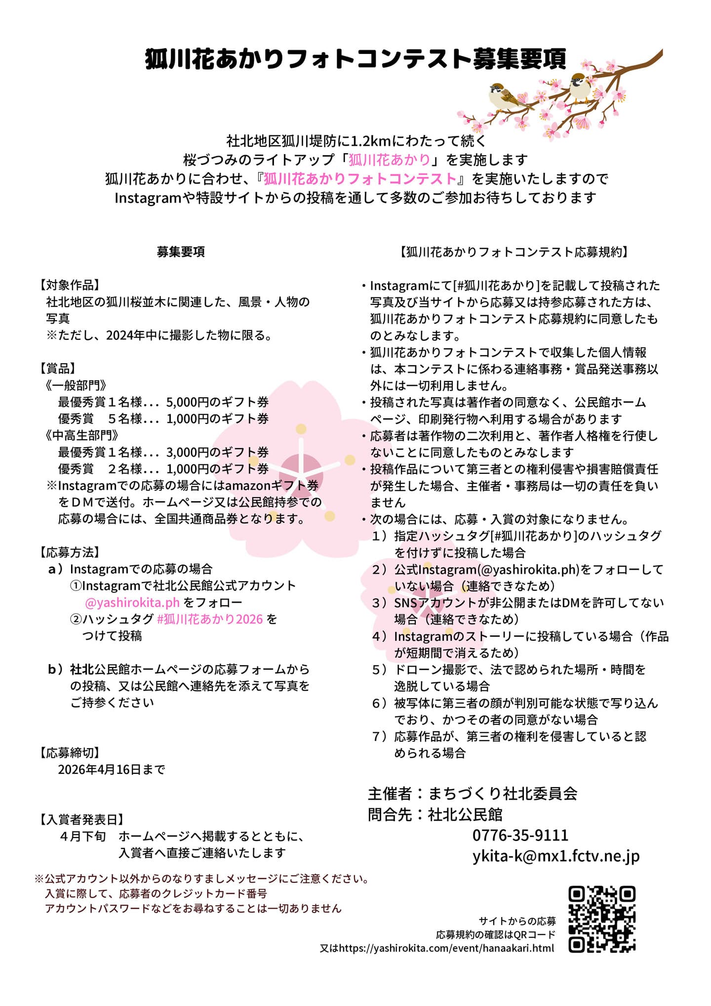 2026狐川はなあかりフォトコンテスト 西部緑道活性化事業 狐川清掃 あじさいロード 東大寺お米送り 地域歴史探索 ワークショップ 環境まちづくり運動 社北カレンダー HOME | まちづくり | フォトコンテスト | 狐川はなあかり 作品の応募 社北フォトコンテストTOP お問い合せ アクセス